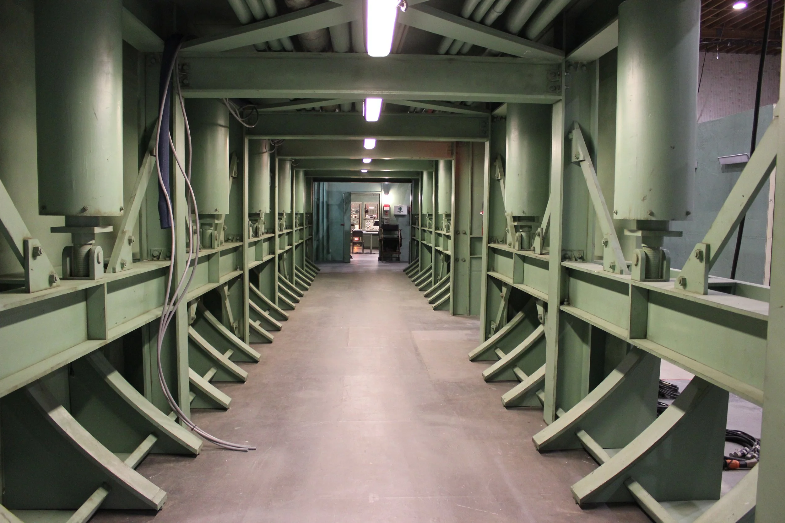This episode revolved around a “functional” Titan Missile Silo complex. We built the cable corridor, control room, a two story section of the main silo with missile complete with a collapsable catwalk and flooding. We were also charged with building the top of the silo with the warhead and the silo doors on location.